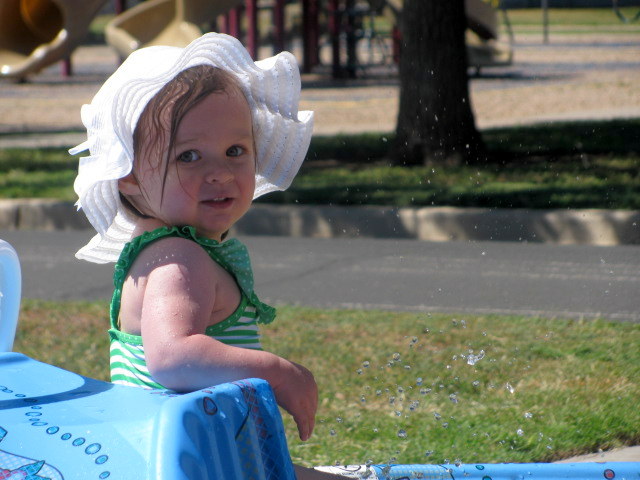 We went to a birthday pool party for one of Lucy's friends from church. She had a blast playing in the water and loved going down the slide over, and over, and over. So much so that I am seriously considering getting her a kiddie pool with slide for her own birthday present.